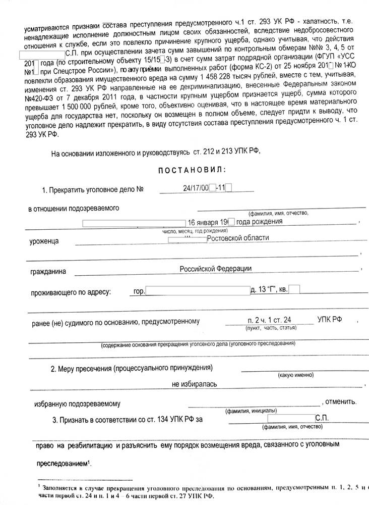 Заместителем руководителя ВСО было принято решение прекратить уголовное дело в отношении моего Доверителя по реабилитирующим обстоятельствам.